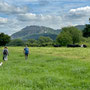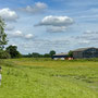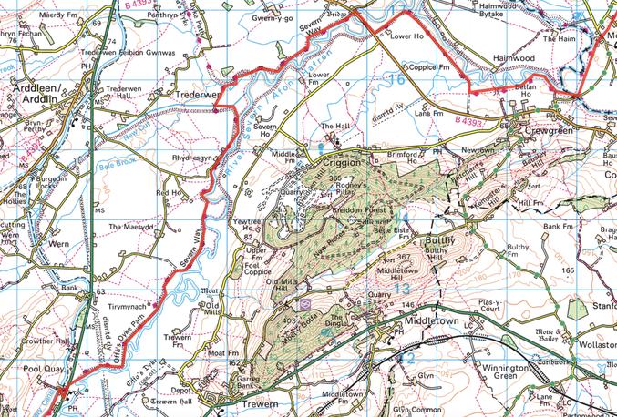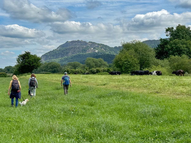 The river was visible for the most part and starting to become significantly wider and deeper. The raised dyke walking was good although very overgrown in places. The biggest issue was the presence of cattle with either a very curious or militant disposition. We had to re-route on a few occasions. The backdrop of Breidden Hill with quarry and Rodney's Pillar was very dramatic.